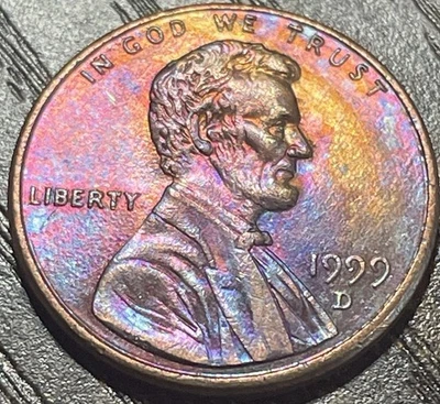 1999-D Iridescent/ Rainbow TONED Lincoln Cent