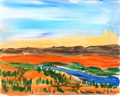 Mountain Landscape Original Abstract Painting – Bold Color Modern Art 14x11