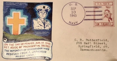 US Navy postal cancelation stamp stationery cover sep. 10 th 1945 Ga. Wainwright