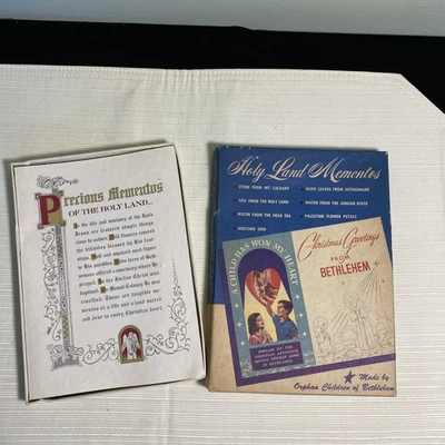 1958 Memento Souvenirs from Holy Land Soil, Dead Sea, Calvary, Gesthemane more