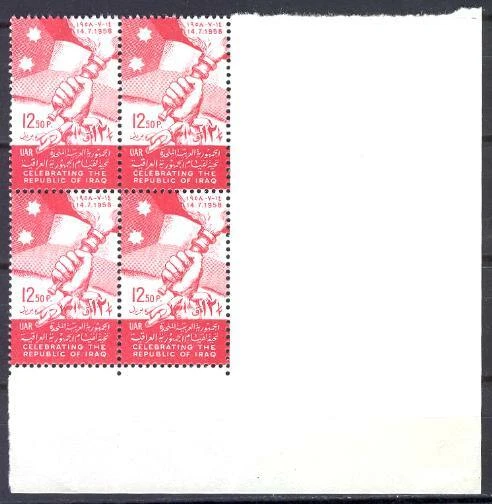 Arab A16 MNH 1959 Bl of 4v Coat of Arms Birds