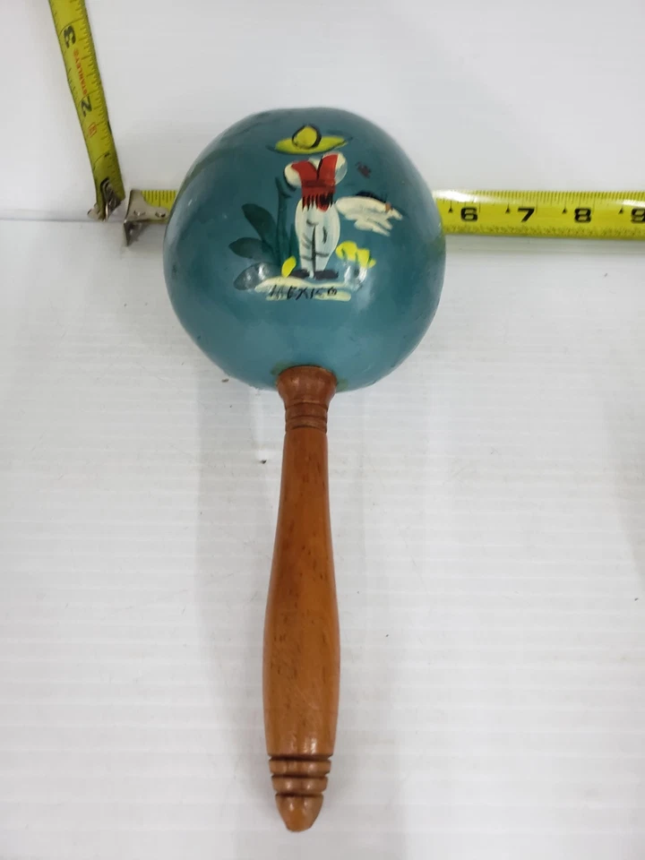 Vintage-Mexico Gourd Maracas-Hand Painted-Shaker Instrument