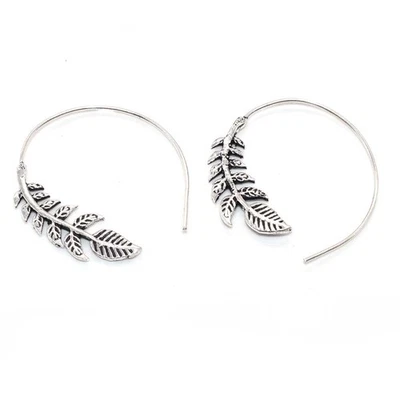 Leaf Design Spiral Handmade Jewelry Hoop Earring 1 z408