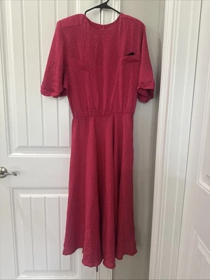 Vintage P.J. Klein Dress Size 9/10 Hot Pink W/ Black Dots (C4)