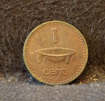 1969 Fiji cent, first decimal type, Elizabeth II, good details, KM-27