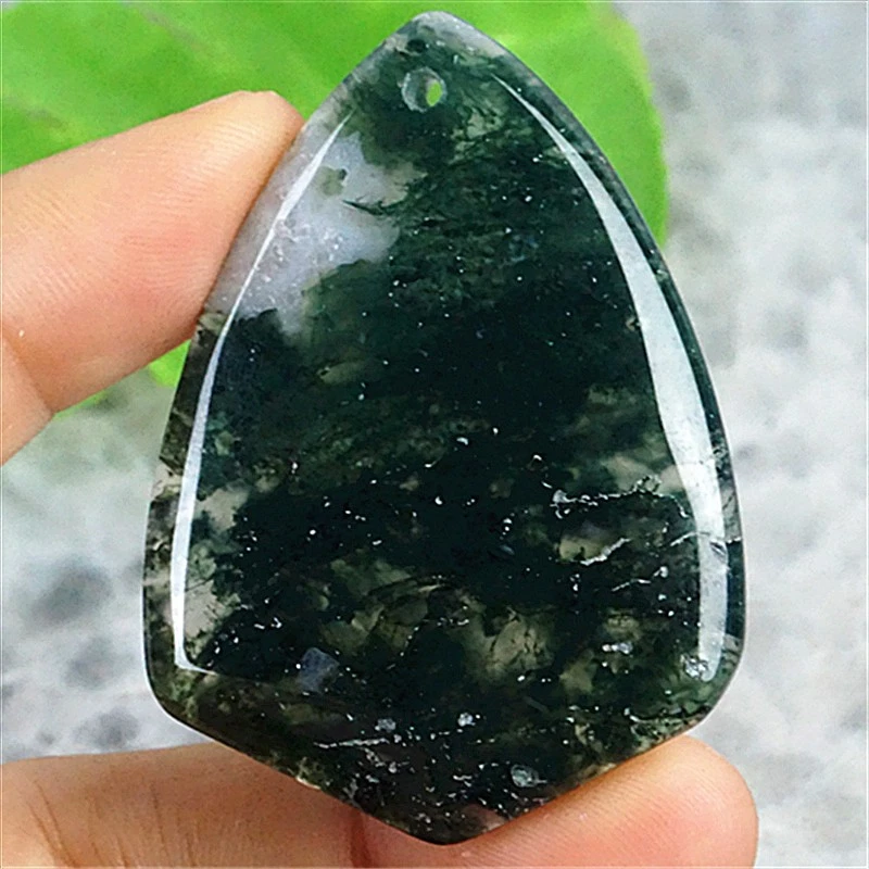414g Natural Brazil Moss Agate Quartz Crystal Dragon HeadHand Caved Mineral F484