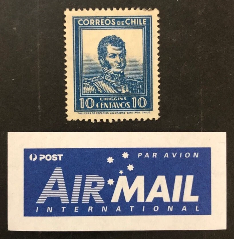 1931 Chile 10 Centavos Bernardo O’Higgins + Unused Par Avion Sticker