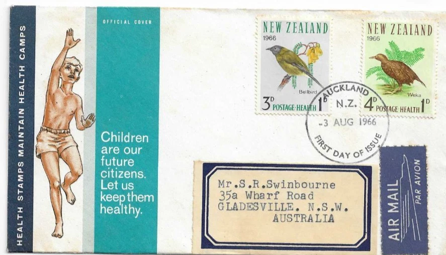 1966 Health set of 2 FDI Auckland 3 Aug 1966 on Airmail Cover to Australia