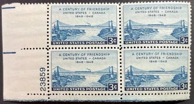 U.S. Scott #961, Plate Block of 4, 100 Years USA-Canada Friendship, VF, MNH