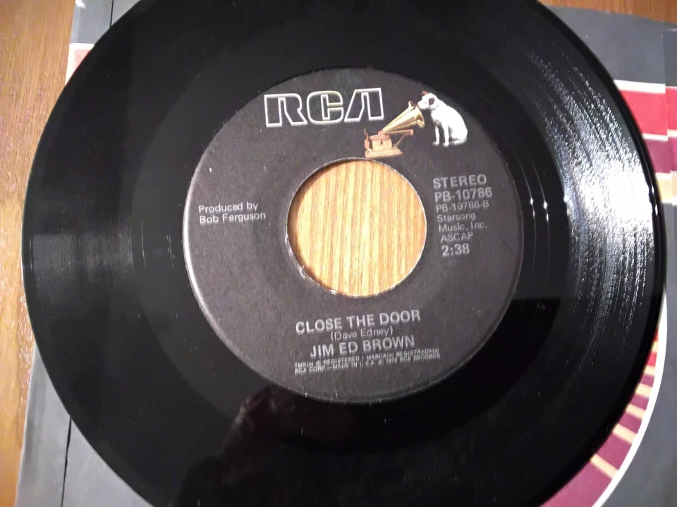 RCA VICTOR 45 Record, Jim Ed Brown, Close The Door, I've Rode With Best vg