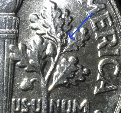 2025 P Roosevelt Dime Die Chip Error On Oak Leaf Reverse