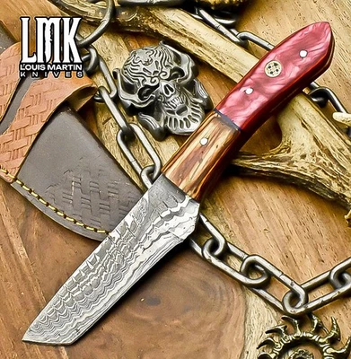LMK Forged Skinner Knife Ladder Damascus Hard Wood Wooden Bolster Decoration