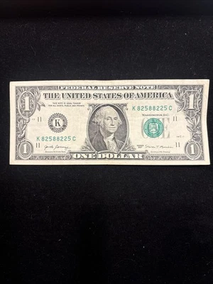 Fancy Serial Number One Dollar Bill Trinaary Serial Number 82588225 Good Shape
