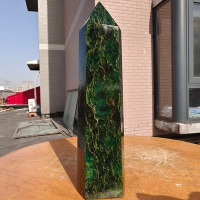 347g Natural Emerald Obelisk Tower Point Quartz Crystal mineral Healing Energy