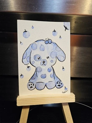 ACEO Original Watercolor 2.5" x 3.5" Blueberry Puppy Signed Bt Artist, thrucal