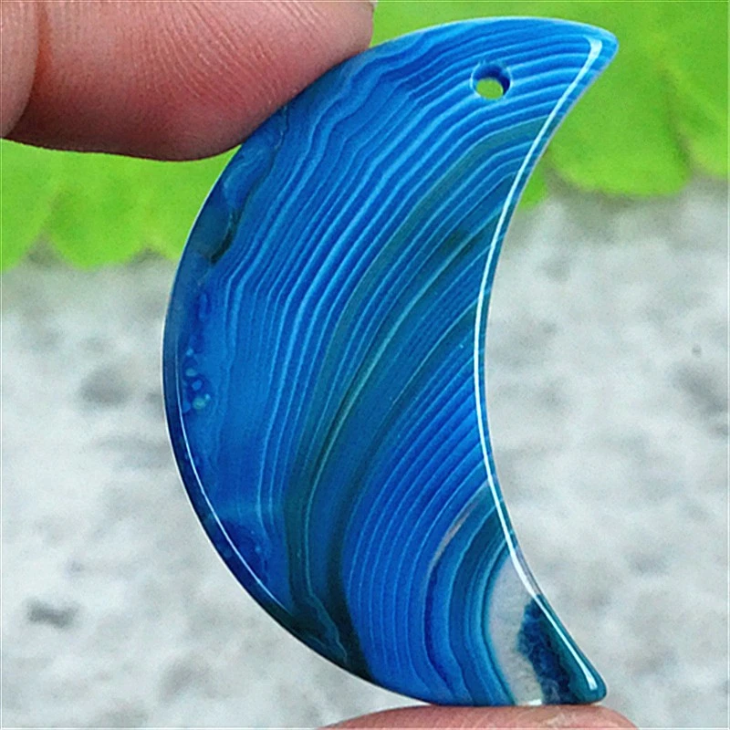 X34941 38x18x3mm Sea Blue/white Druzy Geode Agate Half-moon Pendant Bead