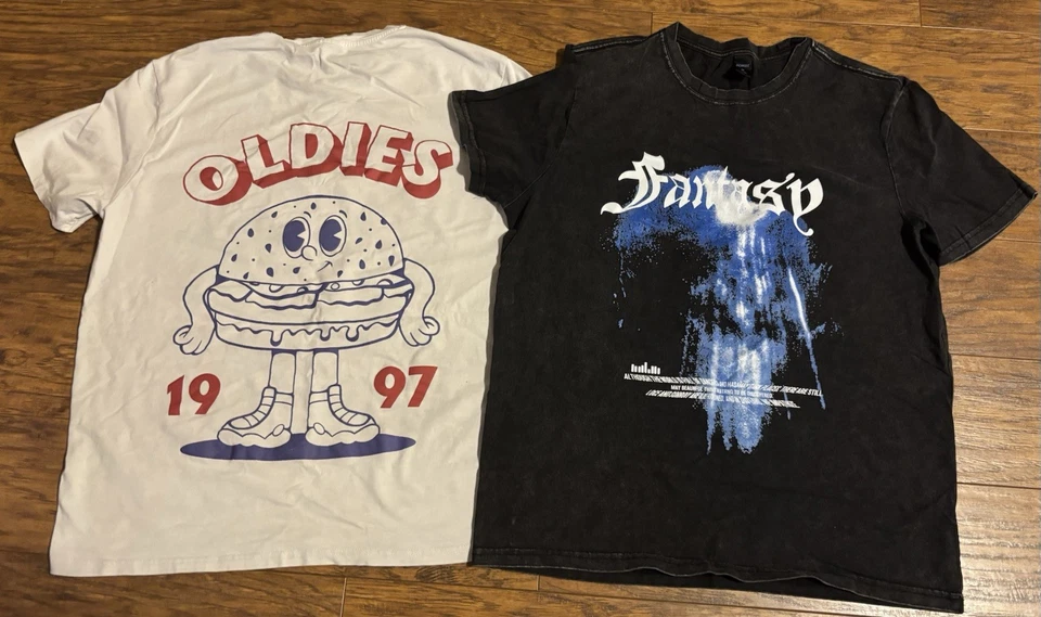 Romwe & SHEIN 2 Shirt Lot White Oldies Burger 1997 & Fantasy Black Sz S Small