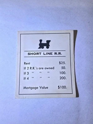 1985 Vintage Monopoly Short Line Railroad Title Deed Card Game Piece Part