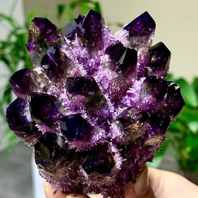 364G Newly discovered purple phantom crystal quartz cluster mineral sample