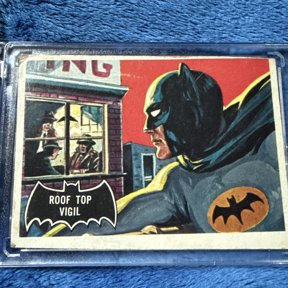 TOPPS 1966 BATMAN Card #5 "ROOF TOP VIGIL" Ex Condition (Black Bat)