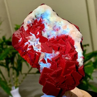 271G Natural black rose fluorescent cube fluorite specimen glow under UV light