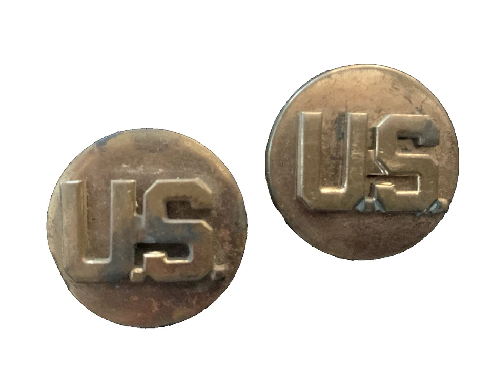 US Forces World War 2 Army Collar Discs Screw Back Brass Insignia Badge 1"