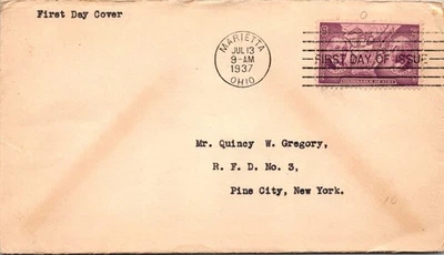 GOLDPATH: US cover 1937 Marietta, OH first day machine cancel CV920_P07