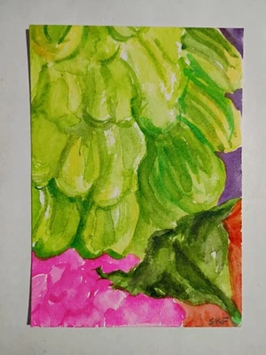 Original ACEO Green Zinnia, Flowers Watercolor Painting art by Sharon Foster