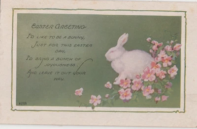 Easter fantasy used 1923 postcard bunny and flowers