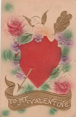Valentines Day fantasy used 1911 postcard Chereb and heart