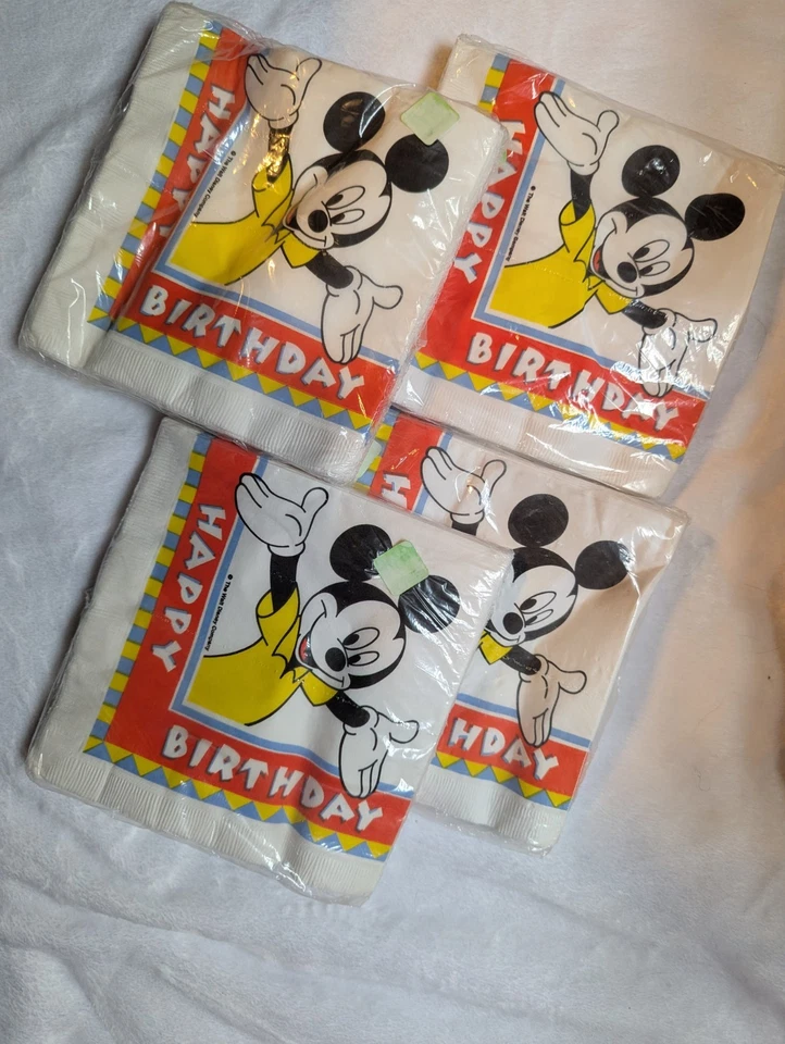 SEALED 4 Packs Vintage Mickey Mouse Napkins Birthday Hallmark Vintage Disney!!
