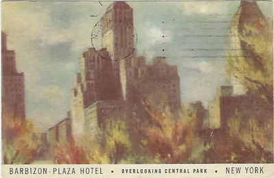 Barbizon Plaza Hotel-Overlooking Central Park-New York City-1950's Postcard
