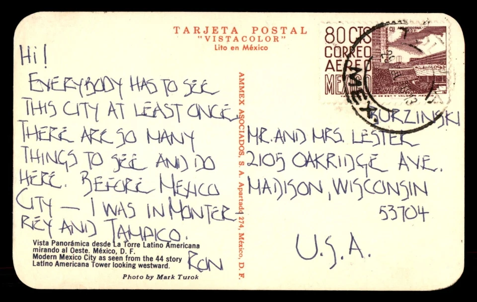 Mayfairstamps Mexico to Madison WI View Mexico City Postcard aaw_60991