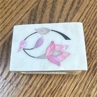 Sara's Imports Inc. Small Stone Rectangle Trinket Box with Floral Inlay