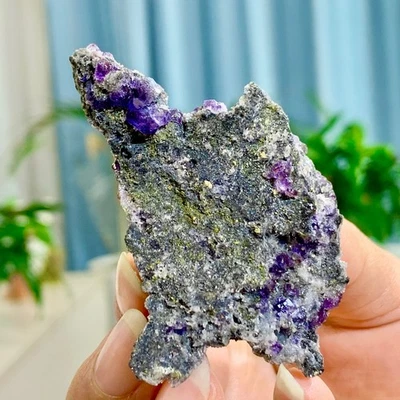 233GNatural transparent Block shape Purple flourite cluster Spiritual Sample