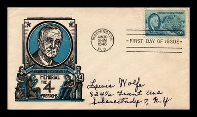 DR JIM STAMPS US COVER ROOSEVELT FOUR FREEDOMS FDC SCOTT 933 STAEHLE CACHET
