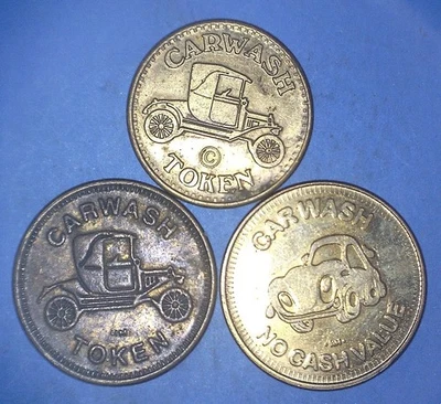 THREE DIFFERENT 23 to 25 mm SIZE CAR WASH TOKENS - SEE PICTURES - *77481579 🌈