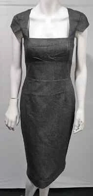 DDA PIED A TERRE grey deep square neck cap sleeve below the knee fitted dress 8
