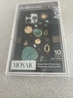 UNIQUE MOSAIC ARTIKL CHARM PHONE CASE BLACK FOR IPHONE 15/14/13 GEMS HANDMADE