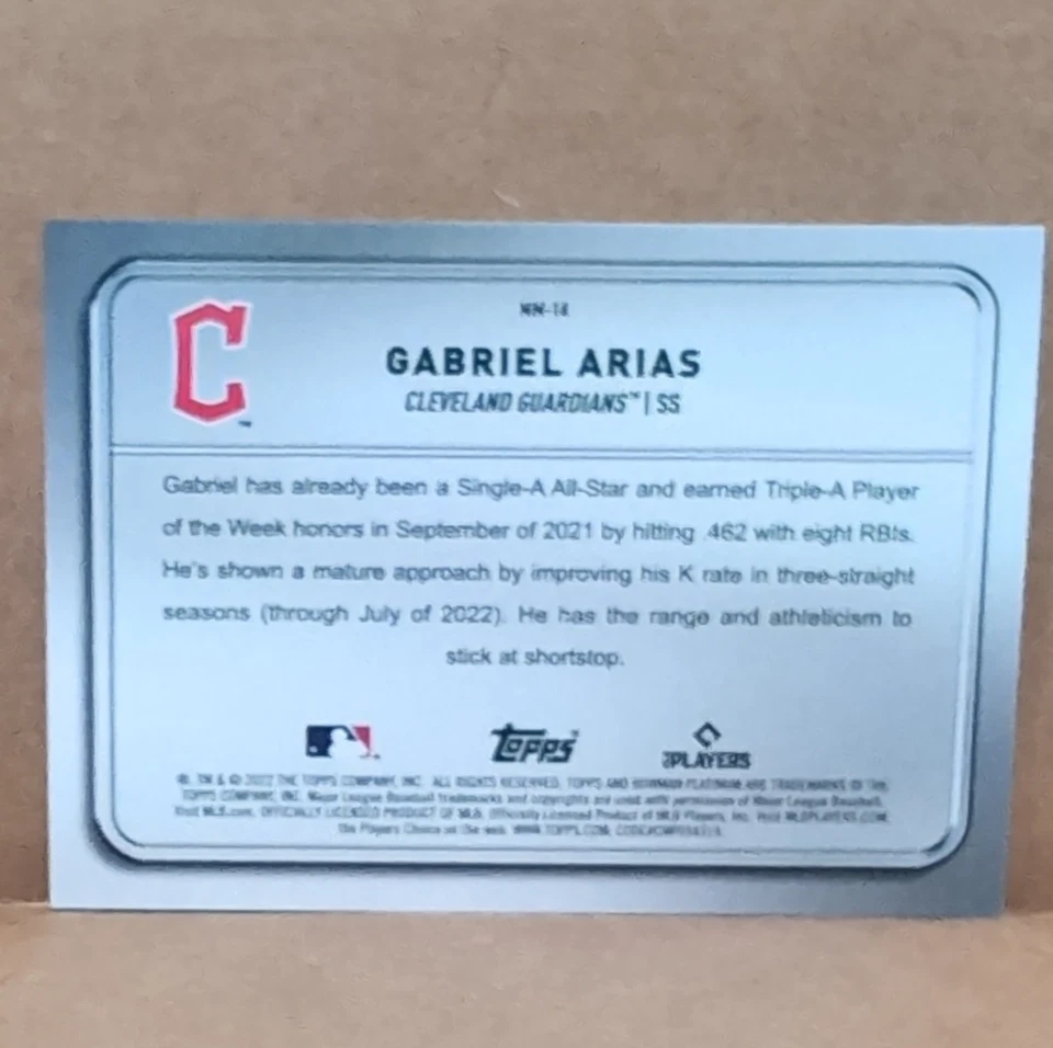 2022 Topps Bowman Platinum Minted in Merit Rookie Gabriel Arias Guardians #MM-14