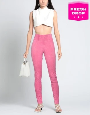 RRP€684 ARMA Suede Leather Skinny Trousers DE34 US4 UK8 S Pink High Waist