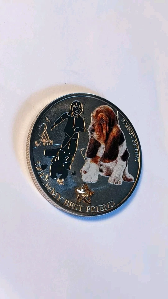 2013 Fiji Fantasy replica coin. Man's best friend Bassett hound. See description