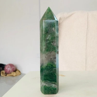 570g Natural Africa Green Agate Quartz Crystal Obelisk Mineral Healing AK293