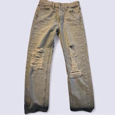 Levi's Wedgie Straight Light Wash Distressed Ripped Jeans Button Fly Womens 26