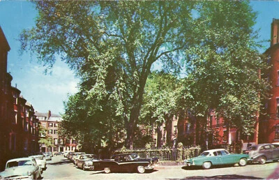 Old Cars in Famous Louisburg Square on Historic Hill Boston MA Old Postcard