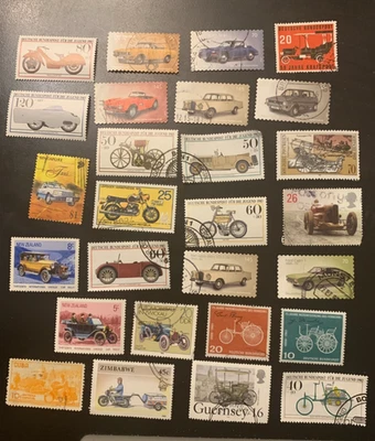 CARS AND BIKES. THIS IS A SELECTION OF 46 STAMPS.