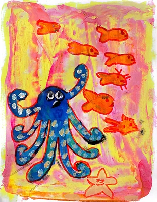 2025 Panini Mosaic - Rookies RJ Harvey #375 Reactive Blue Mosaic Prizm (RC)