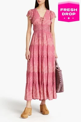 RRP€402 VANESSA BRUNO Maxi Flare Dress FR34 US2 UK6 XS Floral Ruffle Sleeve
