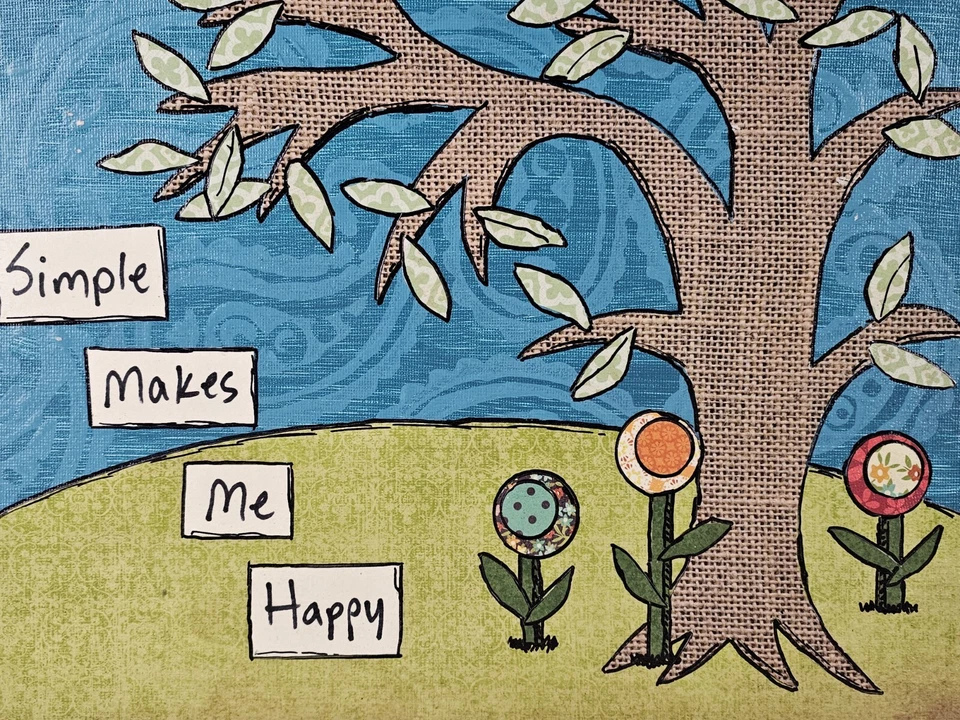ART - Original Folk Art Collage Painting 12x9 Simple Makes Me Happy - Modern Art