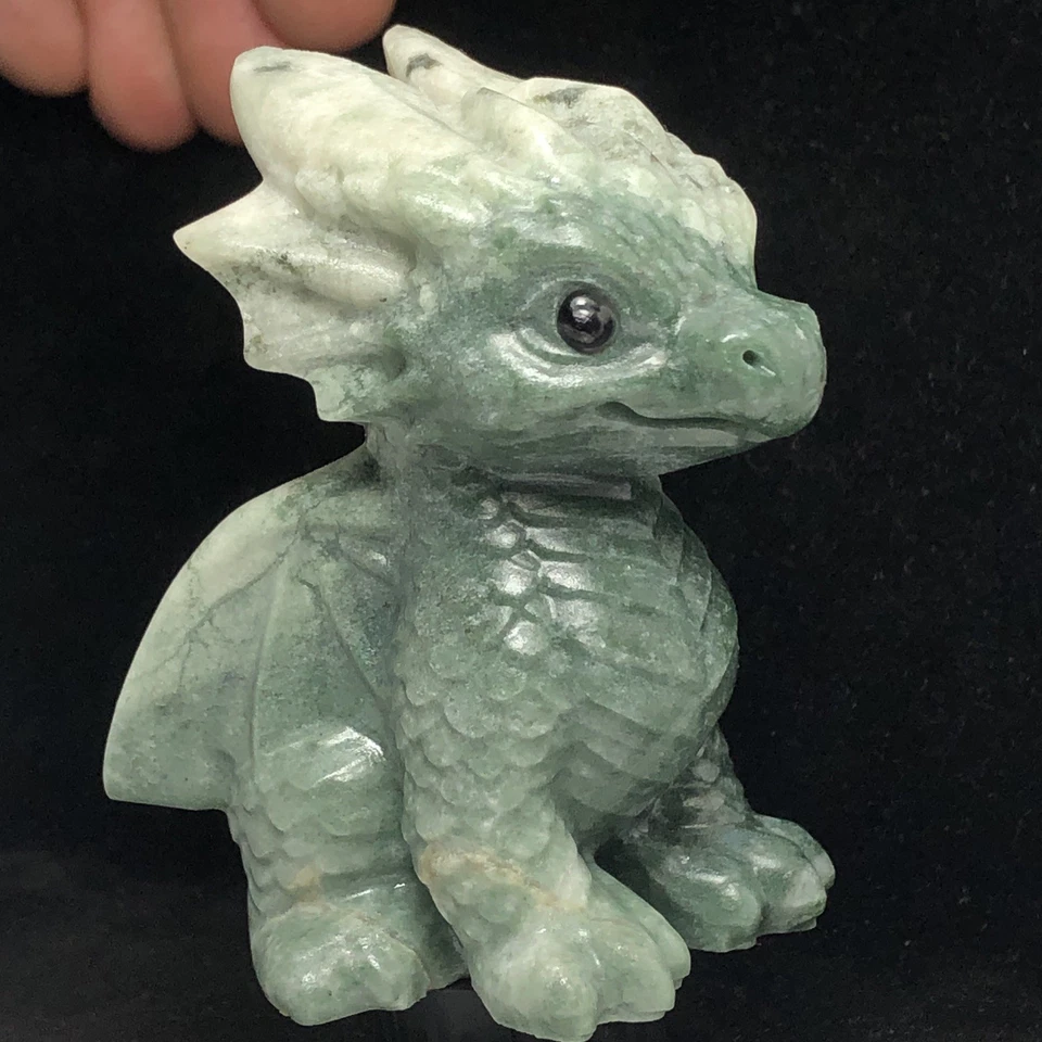 NATURAL LUSHAN GREENSTONE CRYSTAL QUARTZ MINERAL SPECIMEN CARVED DRAGON BABY.